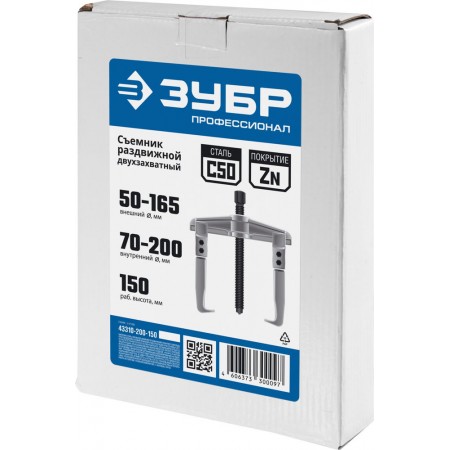 Съемник внешний d 50 - 165 мм внутренний d 70 - 200 мм раздвижной двухзахватный Профессионал ЗУБР 43310-200-150