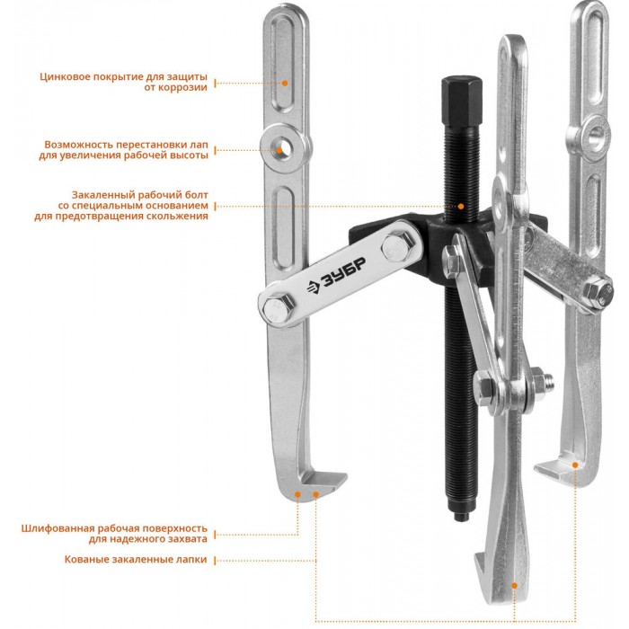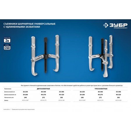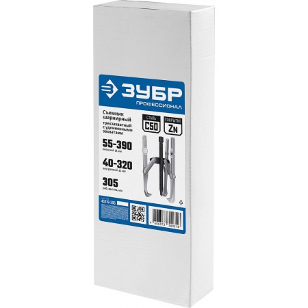 Съемник внешний d 55 - 390 мм внутренний d 40 - 320 мм шарнирный трехзахватный с удлиненными захватами Профессионал ЗУБР 43319-305