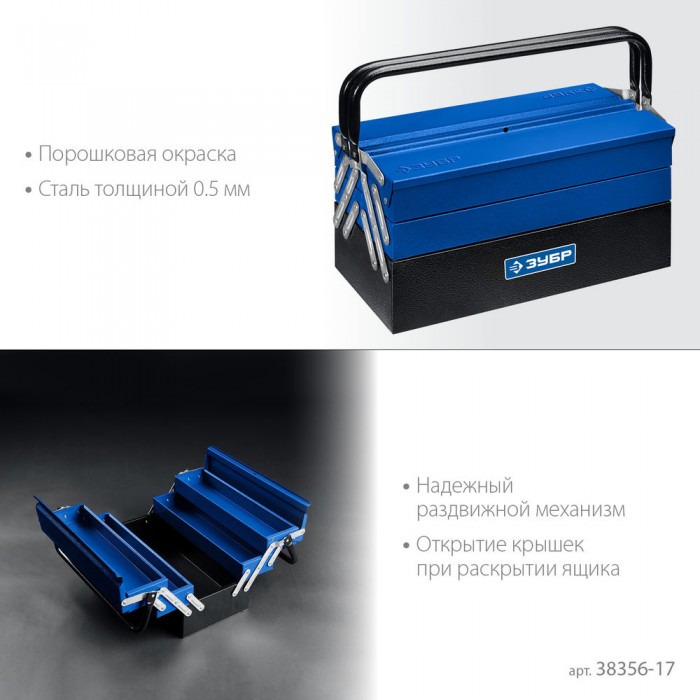 Металлический раздвижной ящик для инструментов 430 х 210 х 205 мм 17" Профессионал ЗУБР ЯРУС-5/17 38356-17