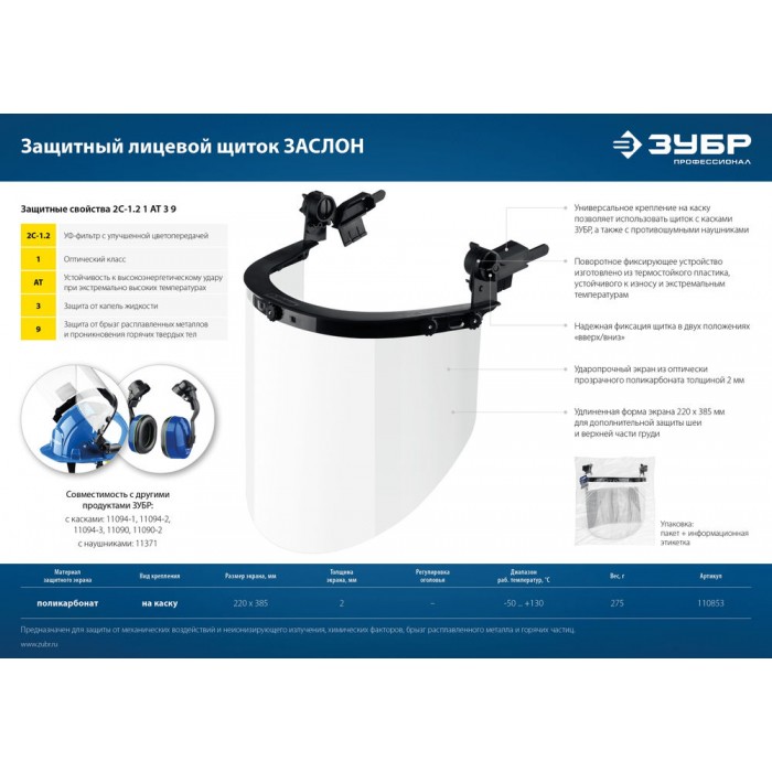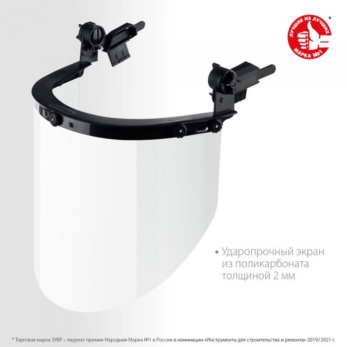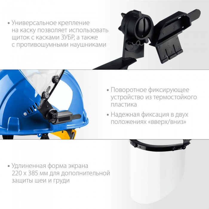 Щиток лицевой защитный ЗАСЛОН экран 220 x 385 мм, поликарбонат 2 мм для крепления на каске ЗУБР Профессионал 110853