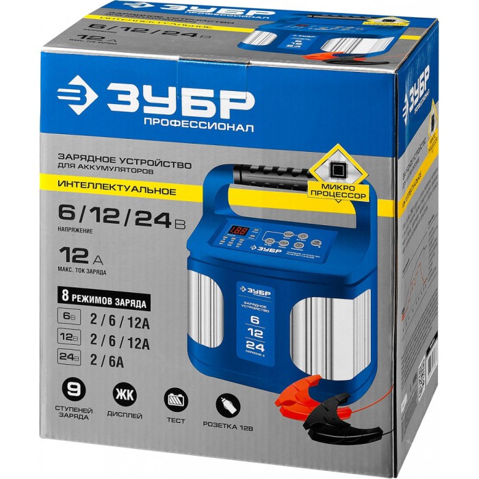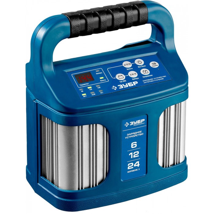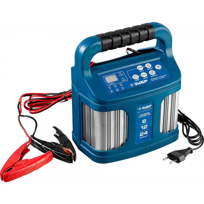 Интеллектуальное зарядное устройство предназначено для зарядки аккумуляторных батарей легковых и грузовых автомобилей, мотоциклов, снегоходов, катеров (лодок), газонокосилок, тракторов, гидроциклов и т.д. Зарядные устройства ЗУБР управляются с помощью микропроцессора. Данные устройства обладают высокой эффективностью и имеют защиту от ошибок, которые может допустить пользователь. Микропроцессор зарядного устройства оценивает состояние батареи и соответствующим образом устанавливает силу зарядного тока и напряжение (в зависимости от типа АКБ и её состояния). Это позволяет наиболее эффективно зарядить аккумулятор и продлить срок его службы.